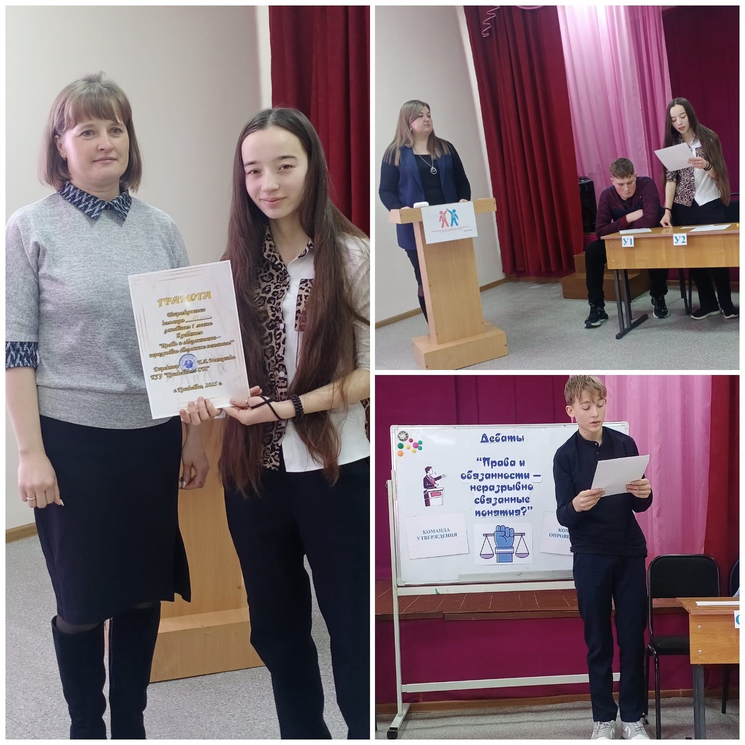 20 қаңтарда біздің мектепте "Адал азамат" бірыңғай тәрбие бағдарламасының "Заң және тәртіп" айлығы аясында " құқықтар мен міндеттер - ажырамас байланысты ұғымдар?"9-10 сынып оқушыларының қатысуымен