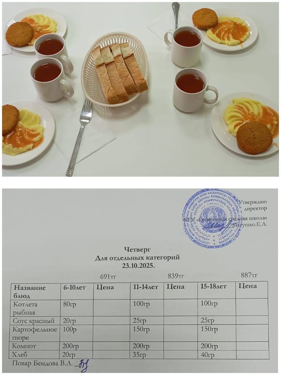 В рамках улучшения организации питания в школе, а также обеспечения контроля за качеством питания обучающихся 23 октября 2025 года в КГУ «Гусаковская средняя школа» членами бракеражной комиссии была проведена проверка качества питания.