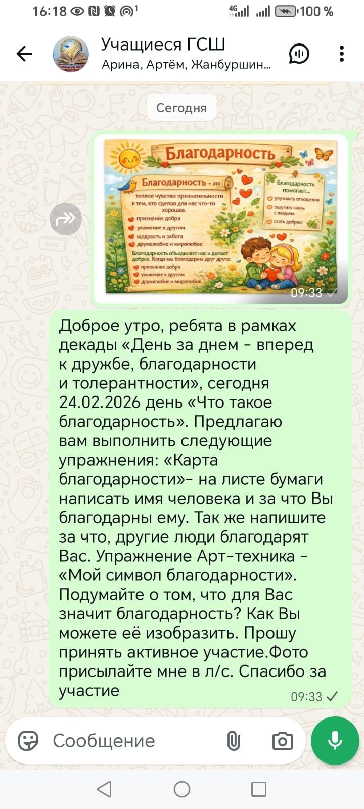 В рамках декады «День за днем - вперед к дружбе, благодарности и толерантности», сегодня 24.02.2026 день «Что такое благодарность»