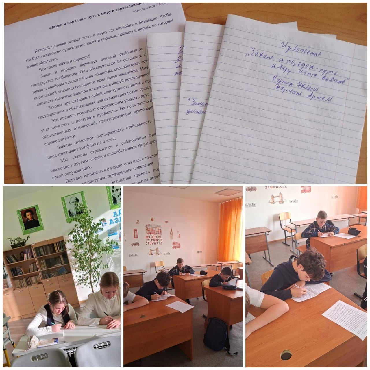 Учащиеся 7-11 классов написали изложение на тему: "Закон и порядок - путь к миру справедливости", "Полиция и дети - вместе за безопасность