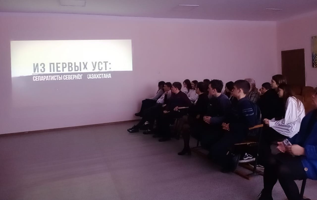 "Гусаков орта мектебі" КММ-де 9-11 сынып оқушылары мен мектеп педагогтары Солтүстік Қазақстан сепаратистері фильмін тамашалады.