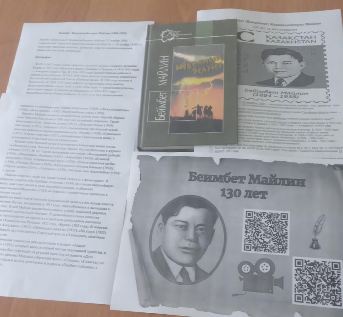 Бейімбет Майлин-туғанына 130 жыл. 6 сынып оқушыларымен кітапханада оқу сағаты