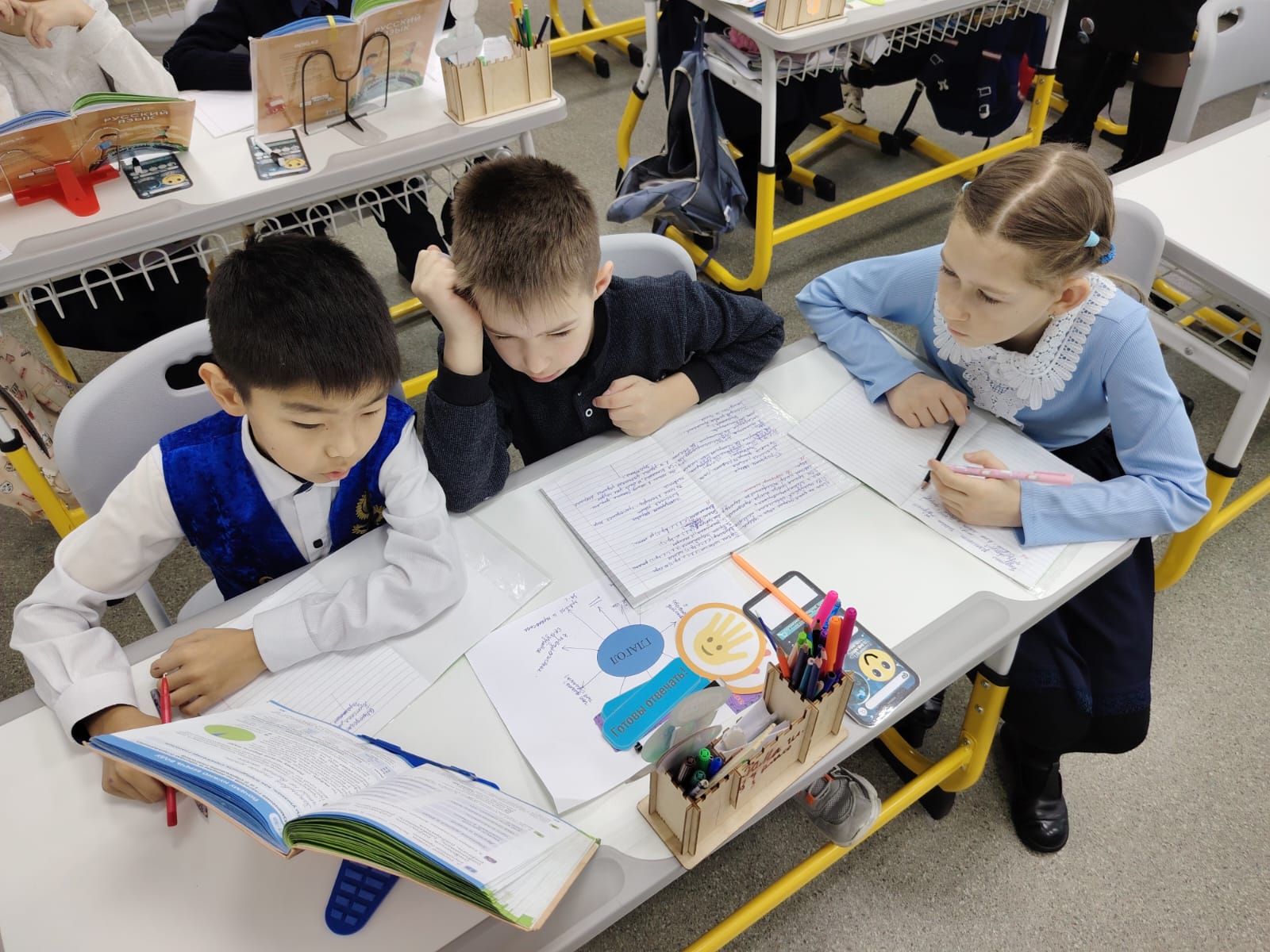 17 ақпанда бастауыш сынып мұғалімі В. А. Жанбуршинова 4-сыныпта "емле етістіктермен емес"тақырыбында ашық Орыс тілі сабағын өткізді.