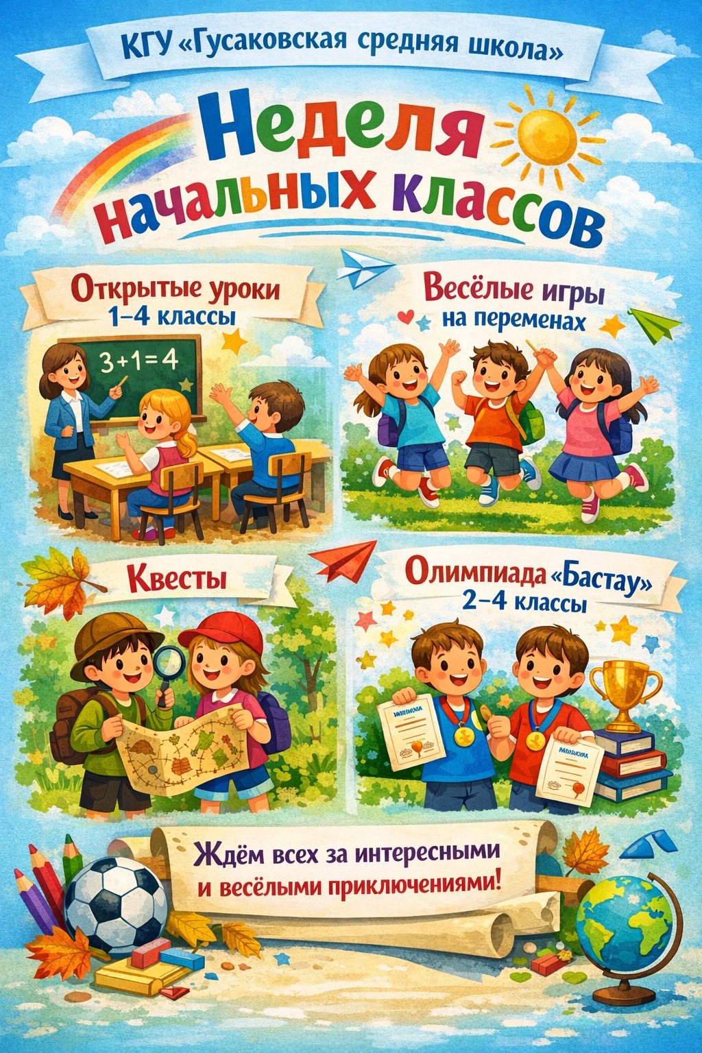 Бастауыш сынып апталығы аясында көңілді ойындар өткізіледі, оның мақсаты-бастауыш сынып оқушыларының функционалдық сауаттылығын дамыту